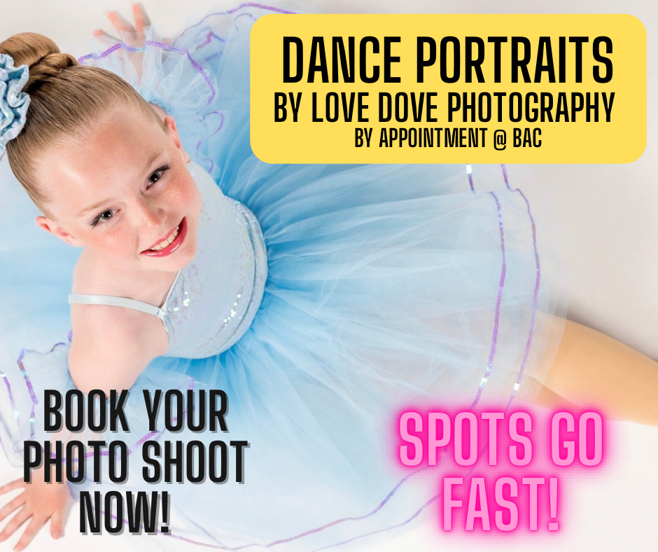 Love Dove Photography will return to BAC for Individual & Sibling DANCE PHOTO SESSIONS by appointment!